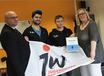 Im Namen der Proske Stiftung überreichten Michael Sandelmann und Sabine Rieß-Schäfer eine Spende an den Jugendreferenten des Jugendwerkes, Mario Favari, und den Vorstand des Jugendwerkes, Torben Lütjen, in Höhe von EUR 2.500.